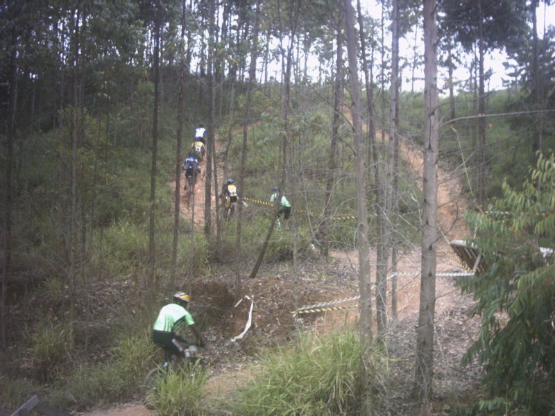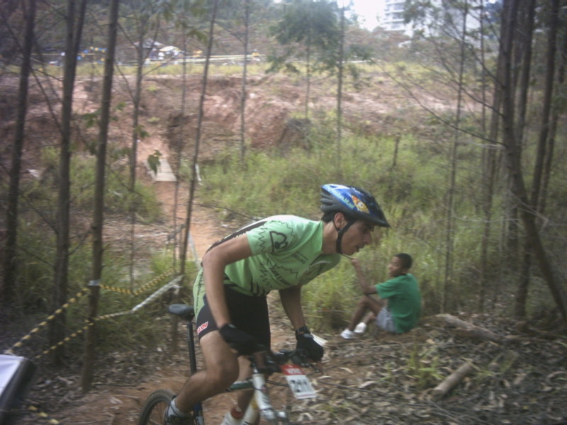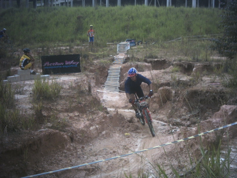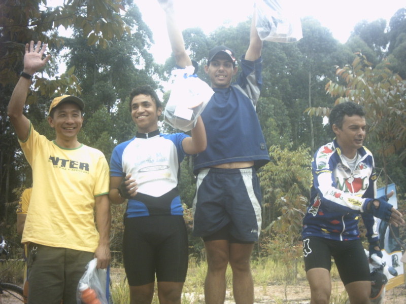 Neste último domingo o Greenbikers Team compareceu a Action Way Friends Cup, um Cross Country festivo organizado pelo nosso amigo Adriano da Action Way. A prova foi realizada na pista de treino da equipe em Alphaville, constituída de muitos single-tracks, pontes de madeira, tops e drops de dar frio na barriga, contando com a presença de muitos atletas da região. Primeiro largaram para 3 voltas a categoria Hard e em seguida a Iniciante para 2 voltas no travado circuito de cerca de 4,3km, onde a velocidade máxima dificilmente passava de 40km/h. Depois houve a largada da Sport para 3 voltas e por último os atletas da Pró que completaram 4 voltas, e as meninas da categoria Feminina que fizeram 3 voltas. Participaram da prova o Manuel na Sport, o Ailton na Hard, o Donizete "Café" e Eu, André na Pró, e a Luiza na Feminina. O Manu teve dificuldades com o circuito muito técnico mas conseguiu terminar a prova, o que não foi possível para o Ailton e o Café que sofreram acidentes sérios em um trecho bastante perigoso, sendo que o Ailton foi salvo pelo capacete e o Café teve a suspensão da bike quebrada. A Luiza fazia uma boa prova, travando uma batalha solitária contra as meninas do Lar, porém foi traída por uma faixa caída e acabou cortando caminho sem querer, mesmo assim obteve a 5a colocação. Na categoria Pró o clima de festa foi deixado um pouco de lado e os pegas foram dignos de provas grandes. Larguei no final do pelotão de cerca de 15 atletas, tendo que fazer uma corrida de recuperação esperando os momentos certos para ultrapassar, já que o circuito era 90% single-track. Logo na primeira volta escapei de um acidente quando o Clayton da equipe do Lar caiu logo a minha frente, onde tive que literalmente passar por cima da bike dele para não atingi-lo, daí pra frente mantive o ritmo pedalando junto ao Flávio courier e a outro atleta, até que na última volta uma fina garoa deixou o circuito um pouco escorregadio e perigoso, onde resolvi atacar e ganhar posições, terminando a prova na 3a colocação, atrás do vencedor Adevílson "Moço" da Geocal e do vice Albert "Canibal" da equipe do Lar.