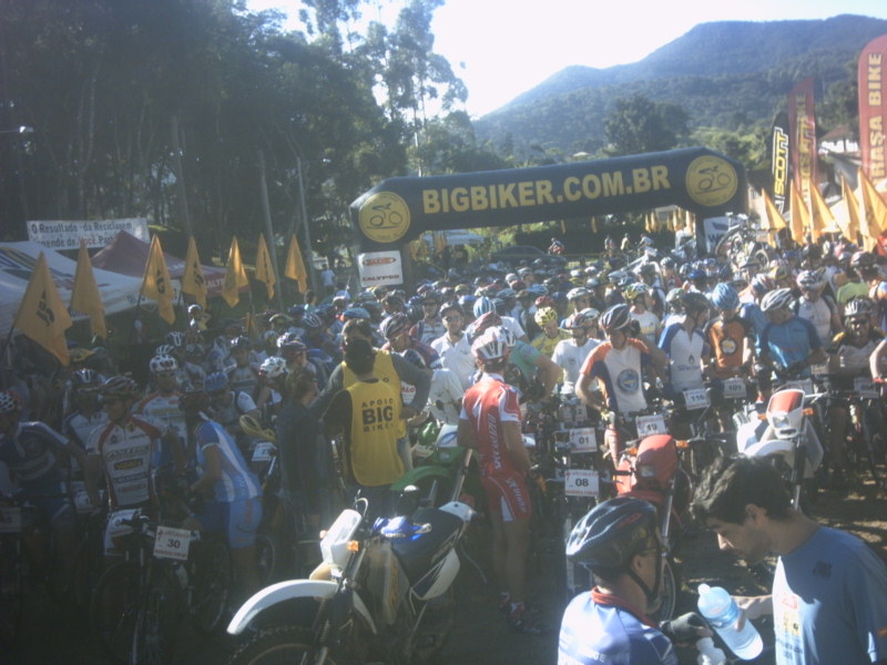 A equipe Greenbikers mais uma vez conquistou excelentes resultados, dessa vez na primeira etapa do Big Biker, campeonato no qual já possuímos vários títulos. E para afirmar nossa luta por mais títulos este ano, começamos pedalando forte. O Fernando e o Manuel foram imbatíveis nas suas categorias e foram os vencedores respectivamente na Sub-40 e na Sub-55. Também na Sub-40 o Harley terminou na 10o colocação e o Adriano em 24o. Na Sub-30 André e Ronaldo pedalaram forte e conquistaram o 2o e o 3o lugares dentre 63 atletas que completaram nesta categoria. O Ronaldo talvez venceria não fosse a sua corrente ter soltado o link no meio do "zigue-zague", um dos single tracks mais difíceis que eu já desci, com degraus enormes, valas onde podia-se quase encostar o guidão em ambos os lados e muitas pedras pontudas, tanto que o Fernando se enroscou nesse down hill e trouxe até um pedaço de carqueja enroscado no guidão e o Adriano viu o mundo girar após pular da bike pra o tombo não ser pior. Fora esse emocionante single track teve a tradicional subida de 10 quilômetros que acabou com as forças de muitos. Na Pró competiram o Reinaldo e o Emerson, terminando respectivamente em 36o na Máster A e 34o na Expert. o Alex competiu na Sport Sub-35 porém um atleta colidiu com seu câmbio no inicio da prova ocasionando a quebra de sua gancheira e o tirando da prova.