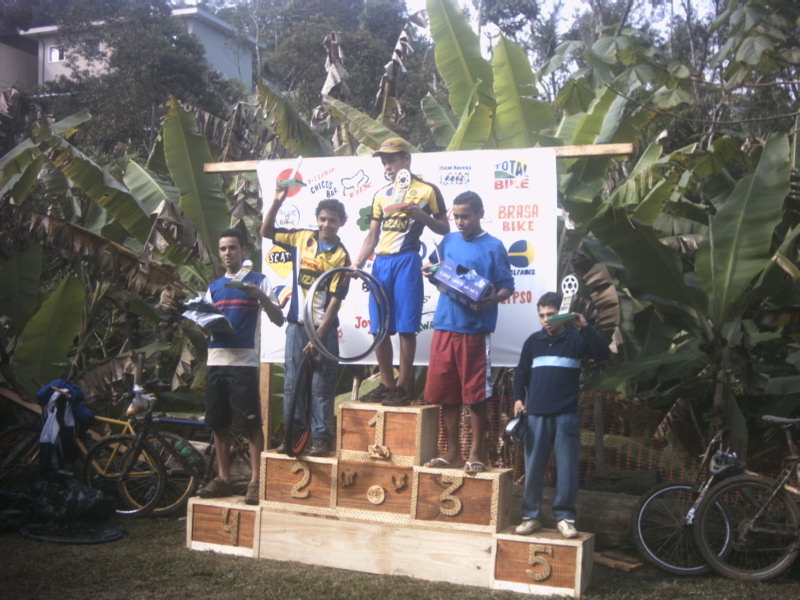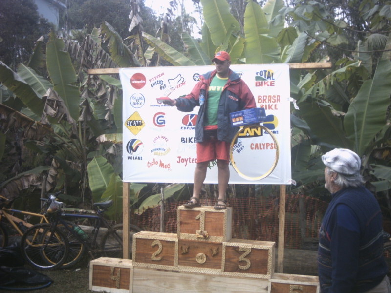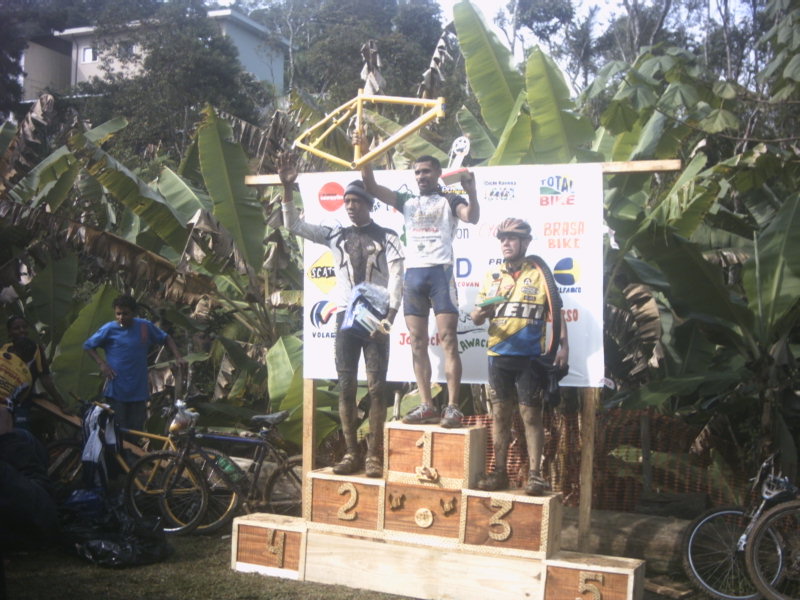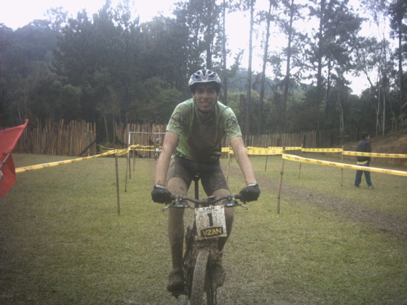 Foi disputada neste último domingo em Parelheiros, São Paulo, a primeira etapa da Volta de MTB do Lar 2006, em um circuito de 9km de extensão que ficou bastante escorregadio por conta da chuva que caiu antes e durante a prova, sendo que em alguns trechos era impossível pedalar e muito difícil mesmo para empurrar a bike. As largadas das baterias foram no estilo "Le Mans" onde era necessário correr um trecho a pé antes de pegar a bike. Não larguei muito bem mas consegui recuperar posições após pegar a magrela, passando a primeira volta entre os três primeiros na geral. Na segunda volta estava na segunda posição quando por conta da desatenção de um fiscal de prova, alcoolicamente alterado, passei direto em uma entrada do circuito e andei uns 300m no caminho errado até me dar conta que estava errado, quando voltei ao percurso estava na 6a colocação geral. Terminei as 4 voltas no enlameado circuito e ainda fiquei com a 3a colocação na categoria Elite Masculina, atrás do Anderson Albert e do João Batista, ambos do Lar. Na 4a colocação ficou o José Adeílton. O Aloísio terminou na 5a colocação mesmo tendo problemas com os freios. No final o sol compareceu para a premiação.
