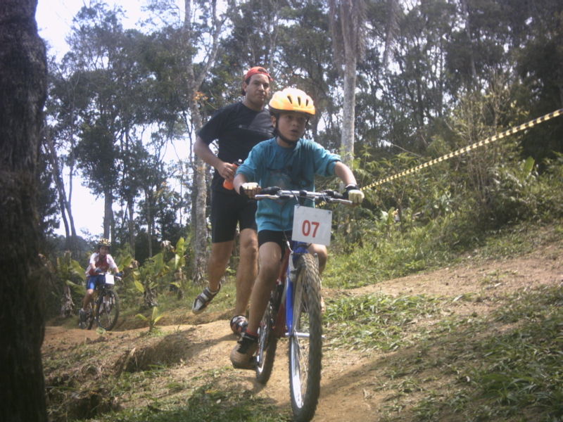 O Lar Nossa Senhora Aparecida realizou neste último domingo a segunda etapa do seu campeonato de mountain bike cross country, desta vez o clima ajudou e com o sol brilhando as trilhas estavam agradáveis de pedalar, diferente da primeira etapa onde a chuva prejudicou bastante o circuito. Como único representante do Greenbikers na prova, competi na Elite masculina, sendo que dos quatro atletas que largaram nesta categoria, José Adeílton, Anderson Albert, João Batista e eu, apenas os dois últimos completaram as cinco voltas no duríssimo circuito totalizando 43km de adrenalina em 2 horas e 43 minutos. Apesar de ter andado forte não consegui alcançar o Batista, que foi o vencedor da etapa. Na Elite Feminina a vencedora foi mais uma vez a Patrícia Assis da equipe do Lar. Os irmãos William e Elias também conquistaram a segunda colocação respectivamente na categoria Junior e Expert. Mas o show ficou mesmo por conta da garotada, que demonstrou garra em cada volta no circuito contagiando os espectadores.